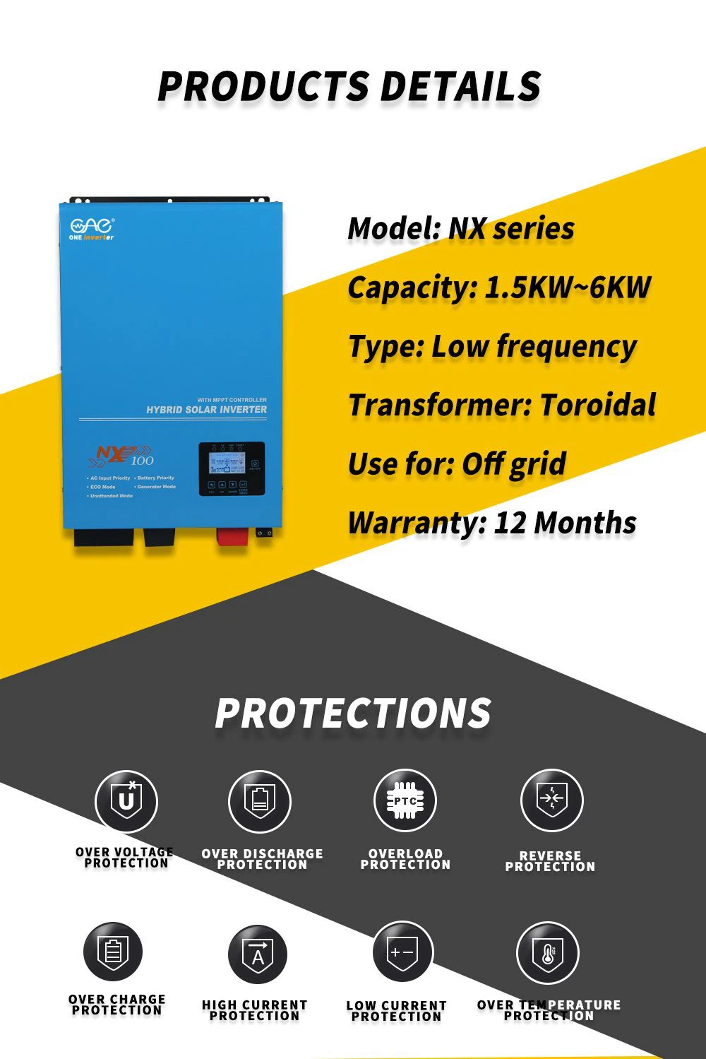 Seri NX: inverter surya hibrida 12v24v